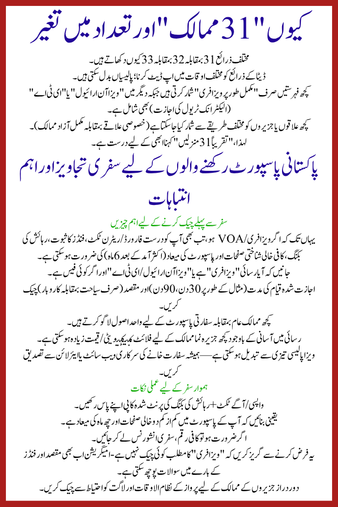 • For Pakistani travellers this list opens tourism/business opportunities in lesser-visited destinations with fewer visa hurdles.