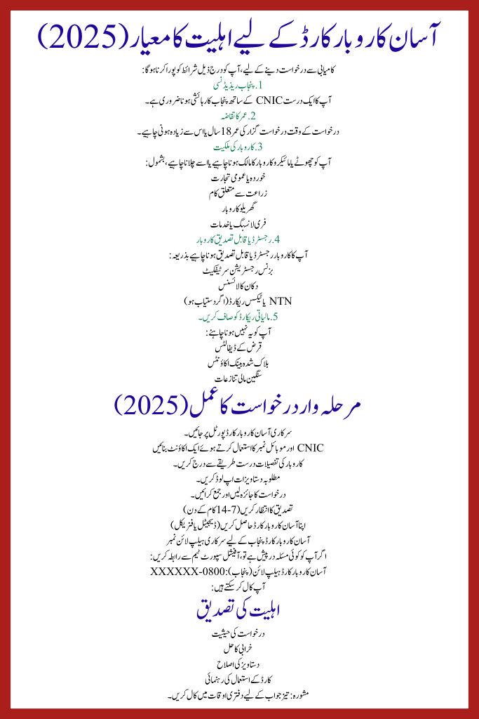 Eligibility Criteria for Asaan Karobar Card (2025)
