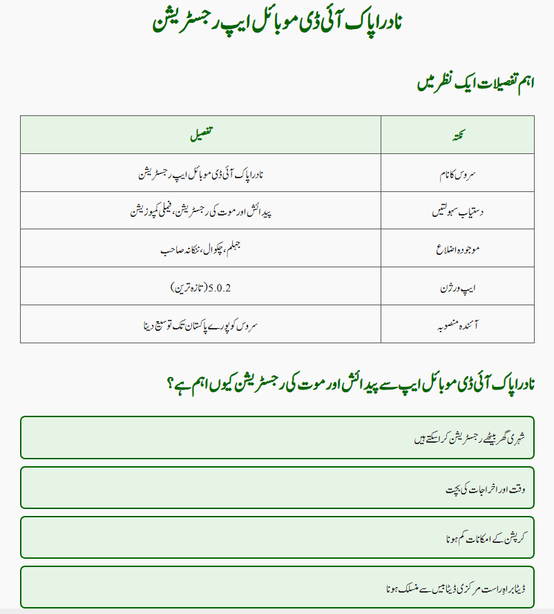 | Service Name | NADRA Birth & Death Registration via Pak-ID Mobile App |