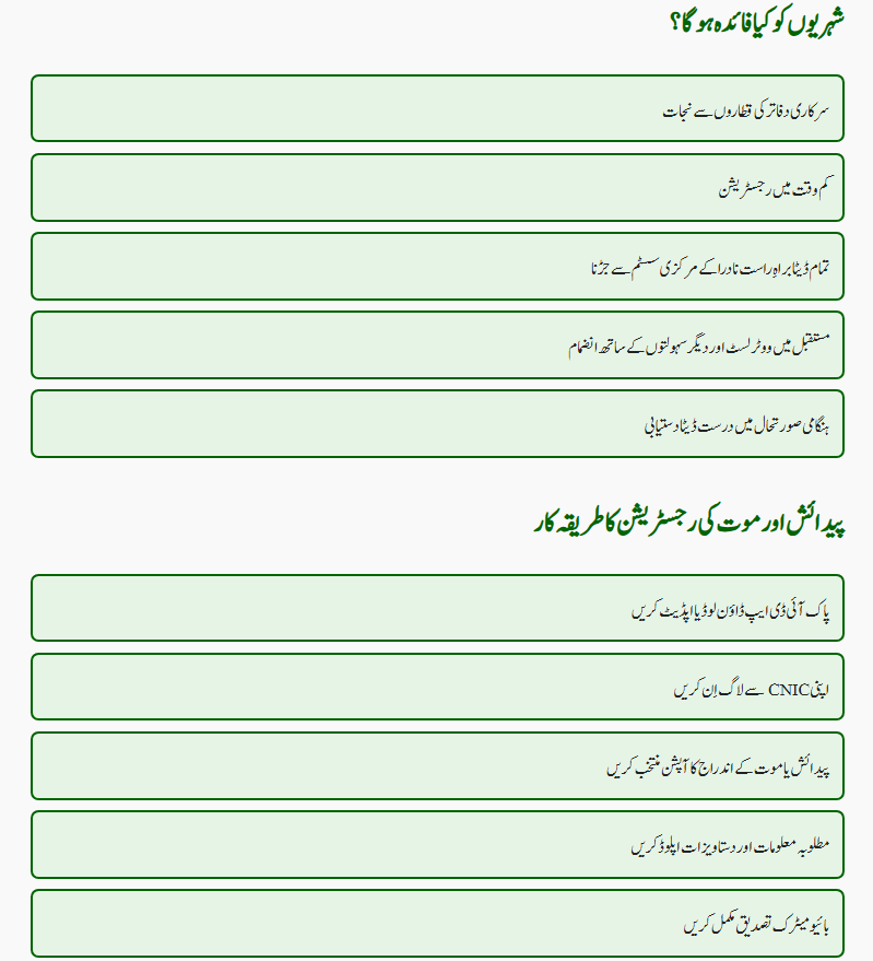 The digital registration service(Birth & Death Registration via Pak-ID Mobile App) brings multiple benefits: