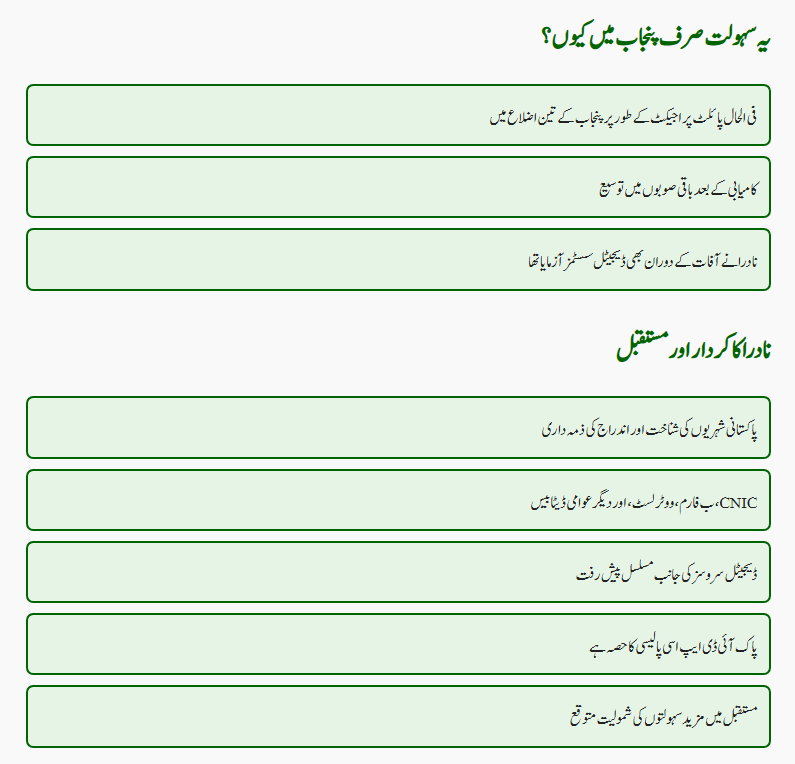 NADRA started this service in three Punjab districts as a pilot project to test and refine the system. Once it proves successful, the service will roll out to other provinces. Earlier, NADRA also used digital tools during floods to help families register their losses and needs. Now, the same system is being expanded for permanent use nationwide.