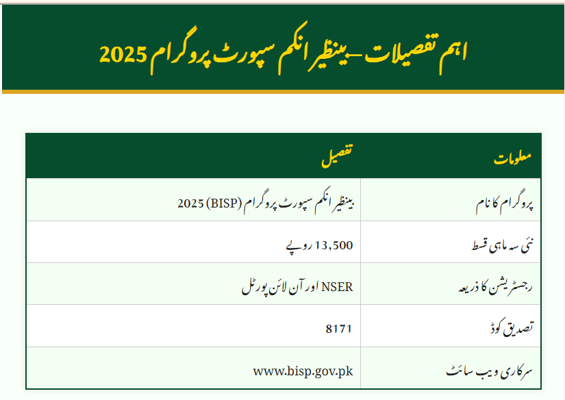 | Program Name | Benazir Income Support Programme (BISP 2025) |