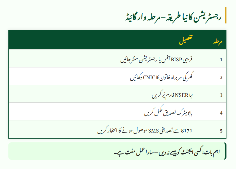| 1 | Visit the nearest BISP Tehsil Office or registration center |