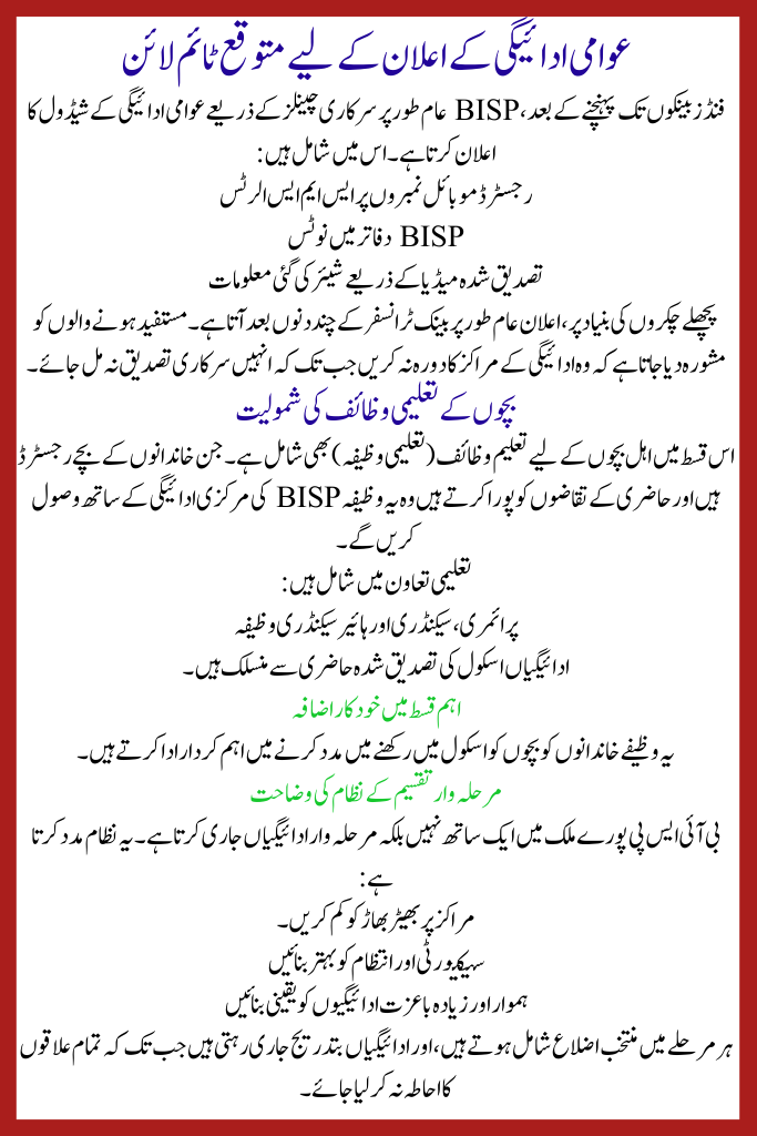 Once the funds reach banks, BISP usually announces the public payment schedule through official channels. This includes: