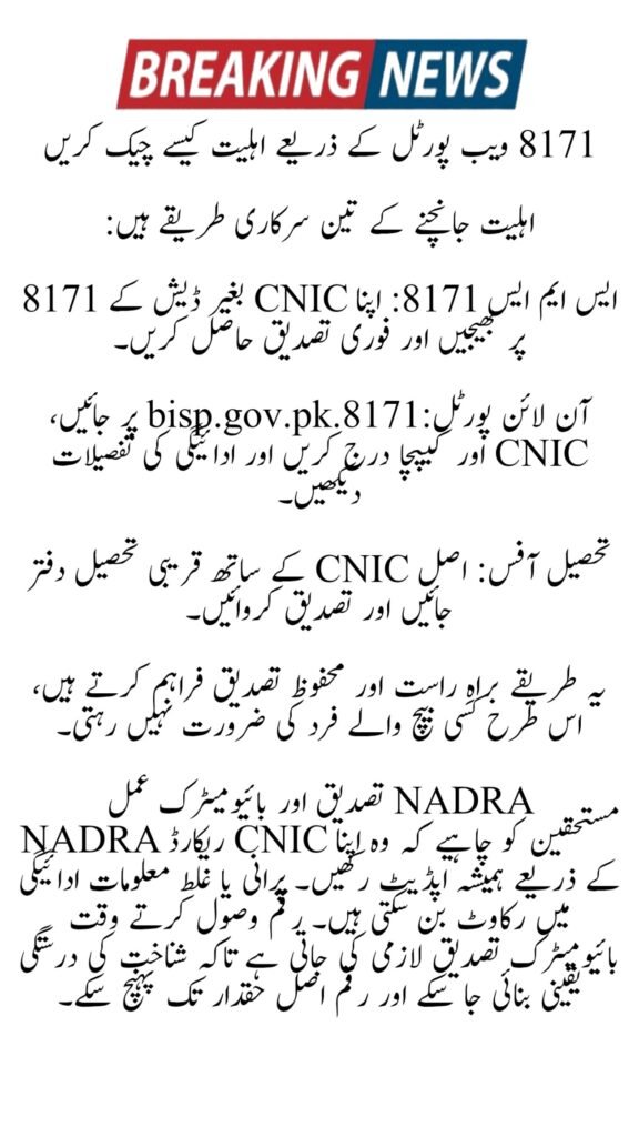 Visit the official 8171 portal or send CNIC to SMS 8171.