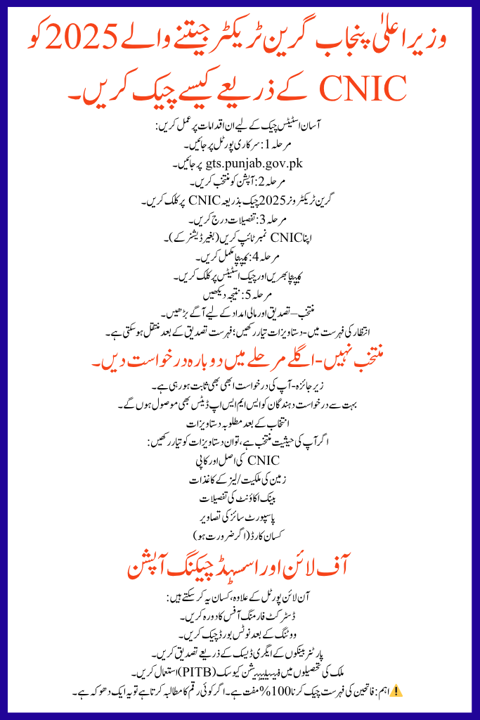 | Check Status | CM Punjab Green Tractor Winners Check 2025 by CNIC |