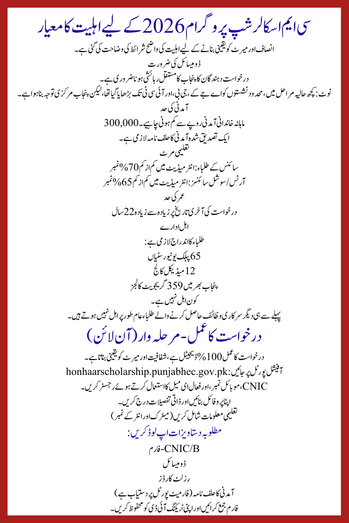 | Program Name | CM Honhaar Scholarship Program 2026 |