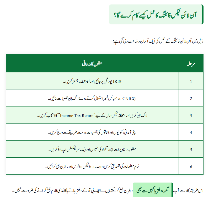 This method means you can file your return from home, office or on the go — no need to visit an FBR office with paper forms.
