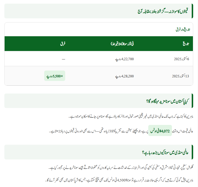 | October 13, 2025 | Rs. 428,200 | +Rs. 5,500 |
