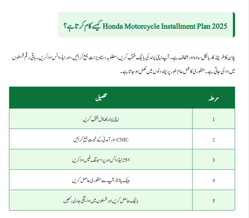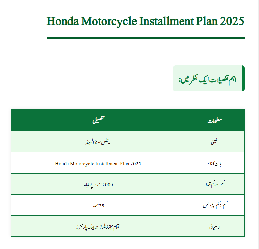 The Honda Motorcycle Installment Plan 2025 is one of the smartest and most affordable ways to own a new bike in Pakistan. Whether you’re a student, office worker, or small business owner, Honda’s flexible installment options make it possible to buy your dream bike with ease.