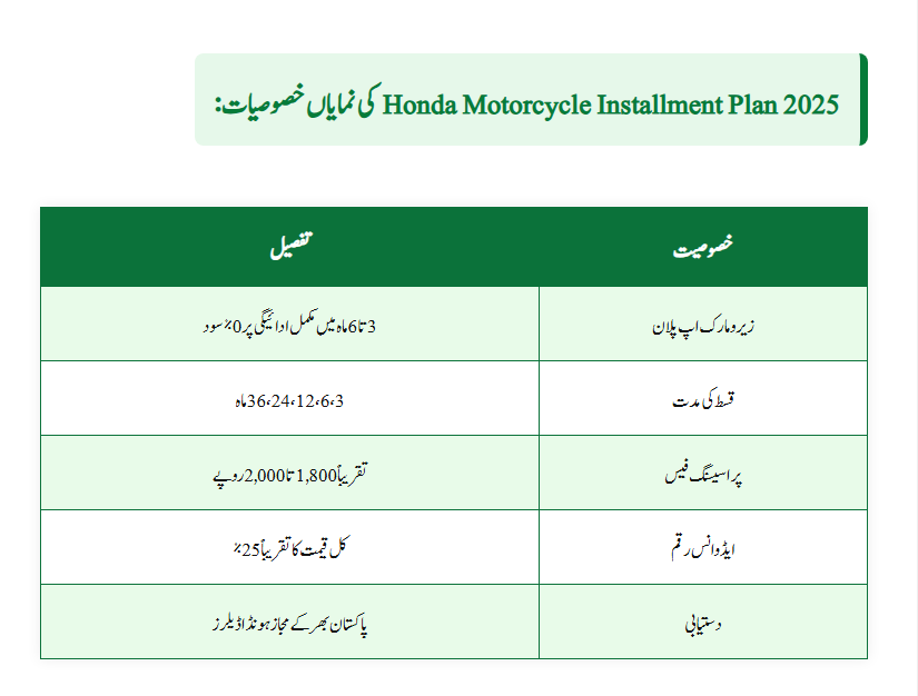 | Plan Name | Honda Motorcycle Installment Plan 2025 |