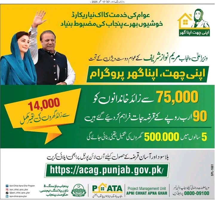The Apni Chhat Apna Ghar Scheme 2025 is a major initiative by the Punjab Government to provide affordable homes for low-income families across the province. This program ensures that deserving citizens, especially women, widows, orphans, and rural families, get a safe and permanent home. The scheme has already completed 30,600 houses, and 105,700 families are registered to benefit from upcoming phases. By combining digital applications, transparency, and sustainable construction, the Punjab Government is making housing accessible and fair for everyone.