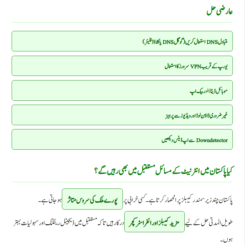 The Internet Suddenly Slow Down in Pakistan has made it clear that our digital infrastructure needs urgent improvement. This problem doesn’t just frustrate users—it directly impacts the economy, freelancers, businesses, and students. While temporary fixes like VPNs and DNS changes help, the real solution lies in adding more undersea cables and backup routes for stable connectivity.