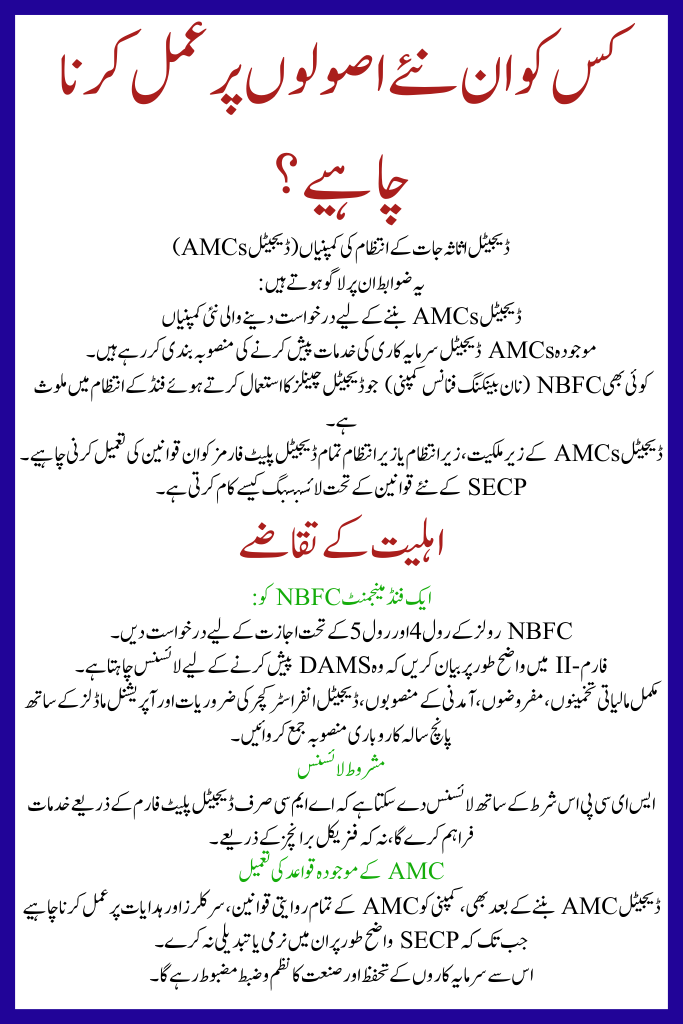 Assistance / ScopeRules for licensing, operating, and regulating Digital AMCs and DAMS in Pakistan