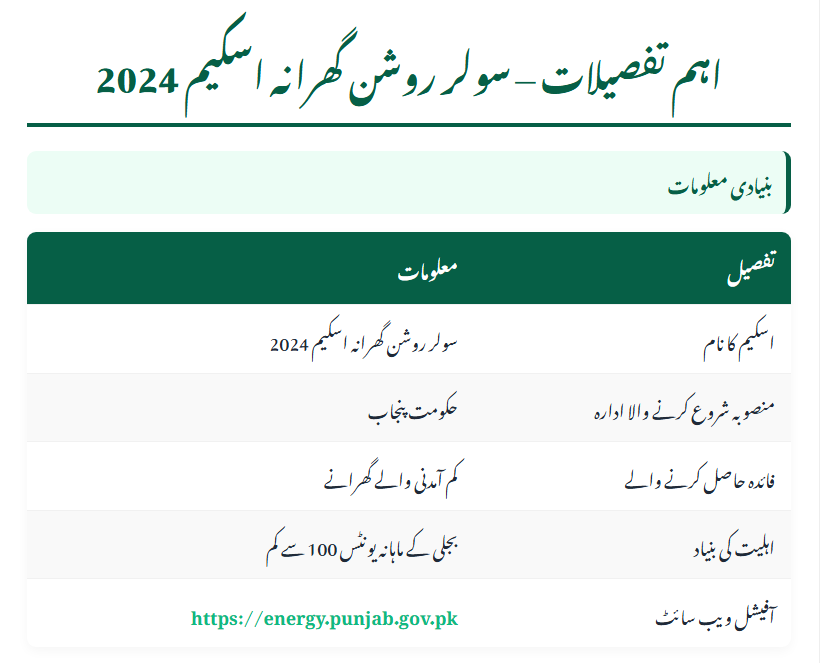 The Solar Roshan Gharana Scheme 2024 is a major initiative launched by the Punjab government to promote clean, renewable energy. The scheme aims to provide solar panel systems—including panels, inverters, batteries, and installation—to families with low electricity consumption (typically under 100 to 200 units per month).